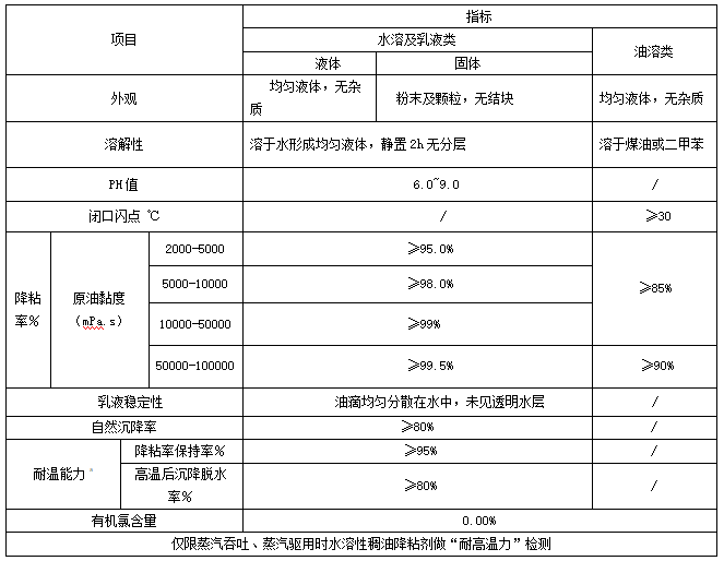一、產(chǎn)品簡介 該化學助劑為表面活性劑。通過降低油水界面張力,使地層中的稠油從油包水的乳化狀態(tài)轉(zhuǎn)變?yōu)橐运疄橥庀虻娜榛癄顟B(tài),使稠油粘度大幅度降低,采收率提高。二、技術(shù)要求